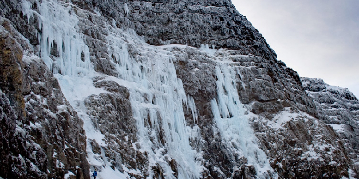 Kjósin var í blússandi aðstæðum, en við byrjuðum á að klifra Spora þar sem Óðinn smellti sér af stað í fyrstu leiðslu sína í vetur, en við misstum af frostakaflanum sem kom um daginn. Spori er löng 3. gráða og ágætis upphitunarleið til að koma sér í gang fyrir veturinn. Ágætis stans er þarna efst þar sem auðvelt er að koma fyrir akkeri og v-þræðingu. Leiðin var það löng að ísskrúfurnar voru ekki nægilega margar þannig að meginakkerið innihélt m.a. ísexi, þangað til að ég kom upp með fleiri skrúfur úr veggnum áður en Addi öryggisfulltrúi kæmi upp og sæji þetta, en það er gott að geta reddað sér á öllu.