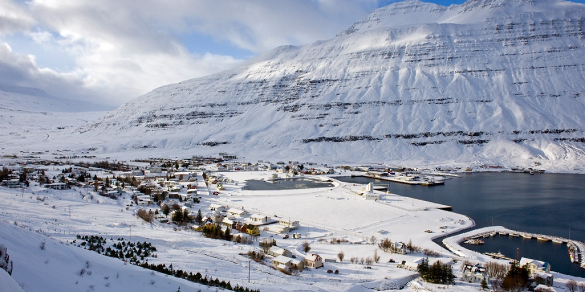 Á Seyðisfirði voru fínustu ísaðstæður og á fimmtudeginum fóru fram klifraraútskipti þar sem Óðinn flaug heim og í hans stað kom Davíð Jón. Við héldum aftur á Seyðisfjörð og fengum með okkur góðan gest frá Egilsstöðum, en það var Eiríkur Dúi, gamall félagi úr bænum sem er fluttur austur. Við klifruðum nýja leið, Ókindina WI4 ~40m sem er í gili rétt ofanvið bæinn, beint fyrir ofan Björgunarsveitarhúsið. Leiðin er í tveim kertum og snjóbrekku á milli þannig að klifrið sjálft summast ekki nema í rétt um 30m.