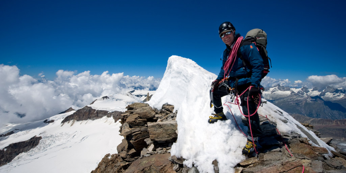 Á sunnudeginum eftir talsvert undirbúningsstreð fórum við svo loksins upp í fjöllin að Klein Matterhorn og gengum þaðan á Breithorn (4164m) sem er talinn einn auðveldasti 4000m tindur Alpanna. Það kom okkur ekki á óvart, en ekki var útsýnið amalegt þar sem Matterhornið og Mt. Blanc blöstu við í aðra áttina og svo Mt. Rosa kerfið sem við vorum að ganga eftir í hina. Við héldum því áfram í austur eftir hryggnum og niður í skála sem heitir Val d‘Ayas.