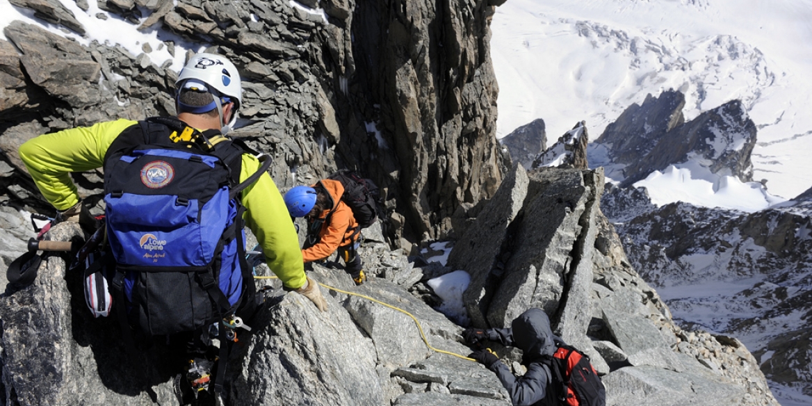 Fyrsta daginn hvíldum við okkur aðeins lengur og biðum af okkur þoku til kl. 8 og skelltum okkur uppí 4200m á Tacul. Þessi dagur var góður, frábært veður og við bara gerðum þetta eins og okkur langaði til, tókum myndir þegar við vildum taka myndir, héngum í ca. 2 tíma uppá topp að taka myndir og njóta lífsins. Eftir þennan dag var skálinn fullur og við fórum aftur niður í Cham í hvíld. Komum þó aftur upp daginn eftir og gistum aftur í Cosmiques.
