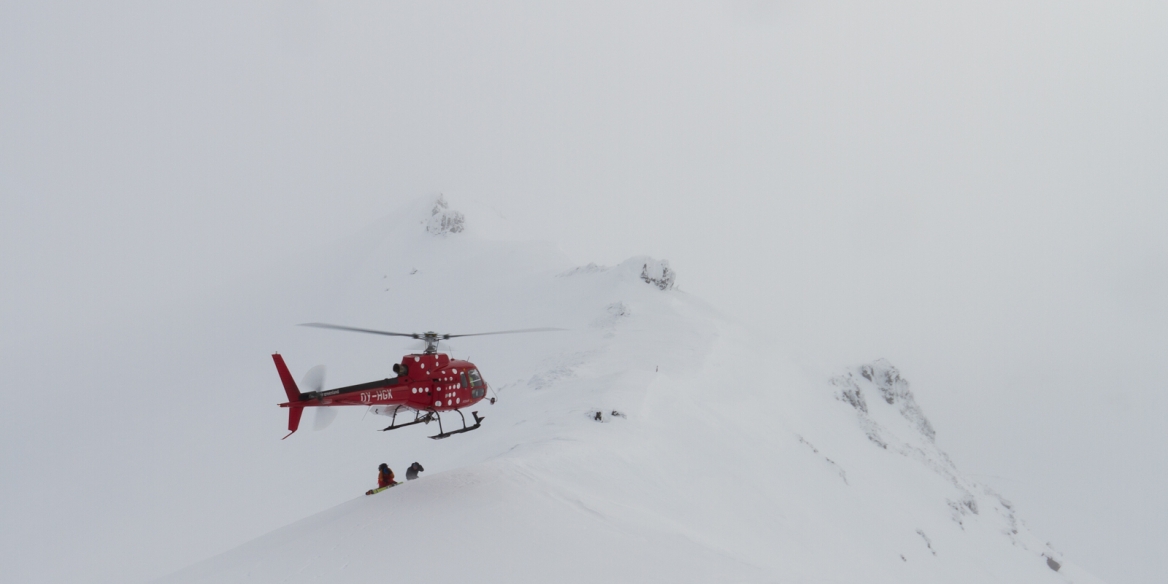 Spakmælið "þegar manni líkar ekki veðrið á Íslandi þá bíður maður bara" rættist og viti menn glufa kom í veðrið. Allir græjuðu sig í snatri og eftir öryggis brief frá Jökli tók þyrlan á loft með fyrsta holl og stefnan sett á Holárfjall. Skýjað var á toppnum á fjallinu og þyrlan lenti þess í stað á þröngum hrygg rétt hjá. Jökull stökk út og við einn af öðrum út í gríðarleg lætin og vindinn frá þyrlunni. Skíðdótið var rifið úr vélinni og lögðumst við allir í grúfu og þyrlan tók aftur á loft. Gleðin leyndi sér ekki og vorum við allir hoppandi kátir og glaðir eftir þessa mögnuðu lífsreynslu og færðum okkur frá lendingarsvæðinu til að taka myndir af næsta holi. Stuttu seinna kom þyrlan aftur með Simon og félaga. Eftir að þyrlan var farinn kallaði Simon "What a rush!" brosandi framm að eyrum.