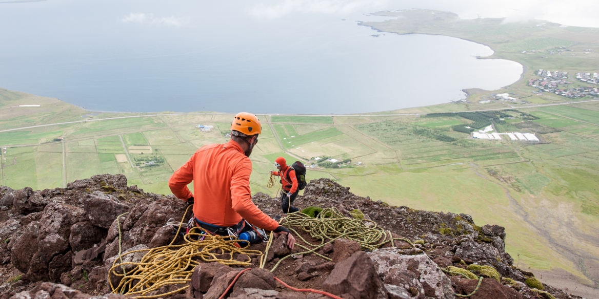 Það hefur verið nokkuð ljóst hvert við vorum að stefna með svifvængjaflugið sem hófst með því að við prófðum að vera farþegar í tandem flugi á hvíldardegi okkar í frönsku ölpunum sumarið 2013. Vorið eftir vorum við komnir á námskeið hér á Íslandi og höfum við flogið talsvert til að ná okkur í reynslu síðan. Um síðastliðin jól var flogið af Skessuhorni, nú var loks komið að því að taka vænginn með í klettaklifurferð og fljúga svo niður í bíl á eftir!