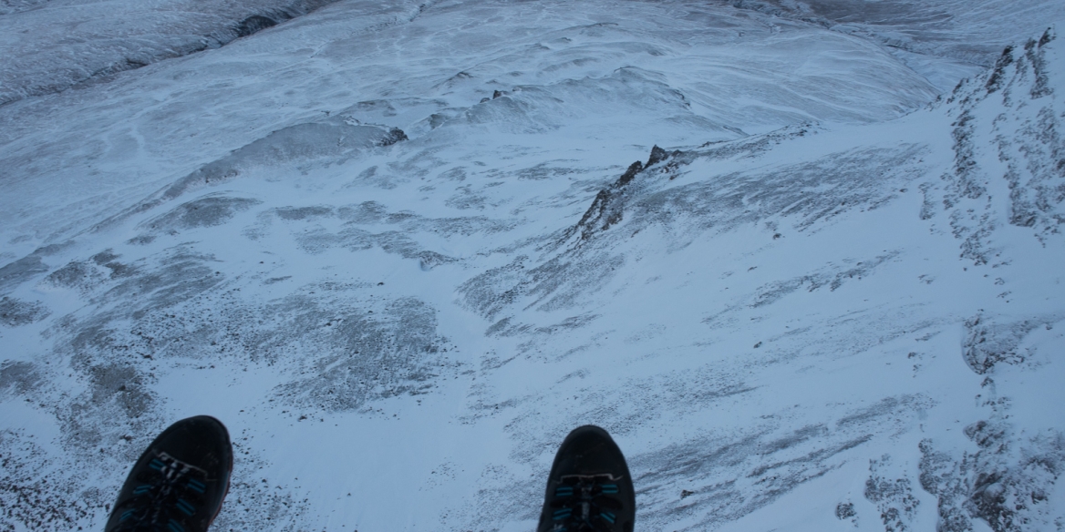 Þar sem við vorum með vængina og vildum vera helst til léttir slepptum við alveg línum og klifurbeltum/tryggingadóti og vorum bara með klifur- og nauðsynlegan öryggisbúnað. Við mælum þó ekki með því nema fyrir þá sem þekkja vel til aðstæðna þarna og eru öryggir í framdrifinu.