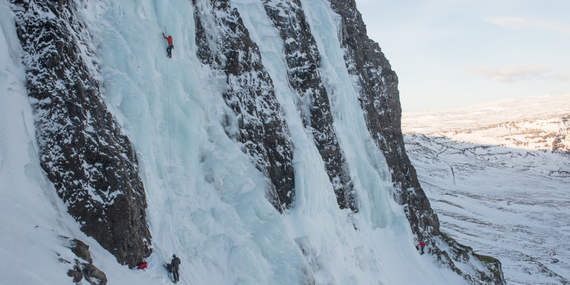 Halldór byrjaði á að klifra okkar fyrstu leið, Hvítserk (WI4-, 60m), Þá tók Ásgeir Spaða (WI4, 70m) og í lokin tók Gummi aukaleiðina lengst til vinstri (Slött, WI3, 40m) rétt áður en myrkur skall á. Reyndar stökk Ásgeir í aukamission meðan Gummi klifraði Slött svo að Ævar hljóp í skarðið með Halldóri.