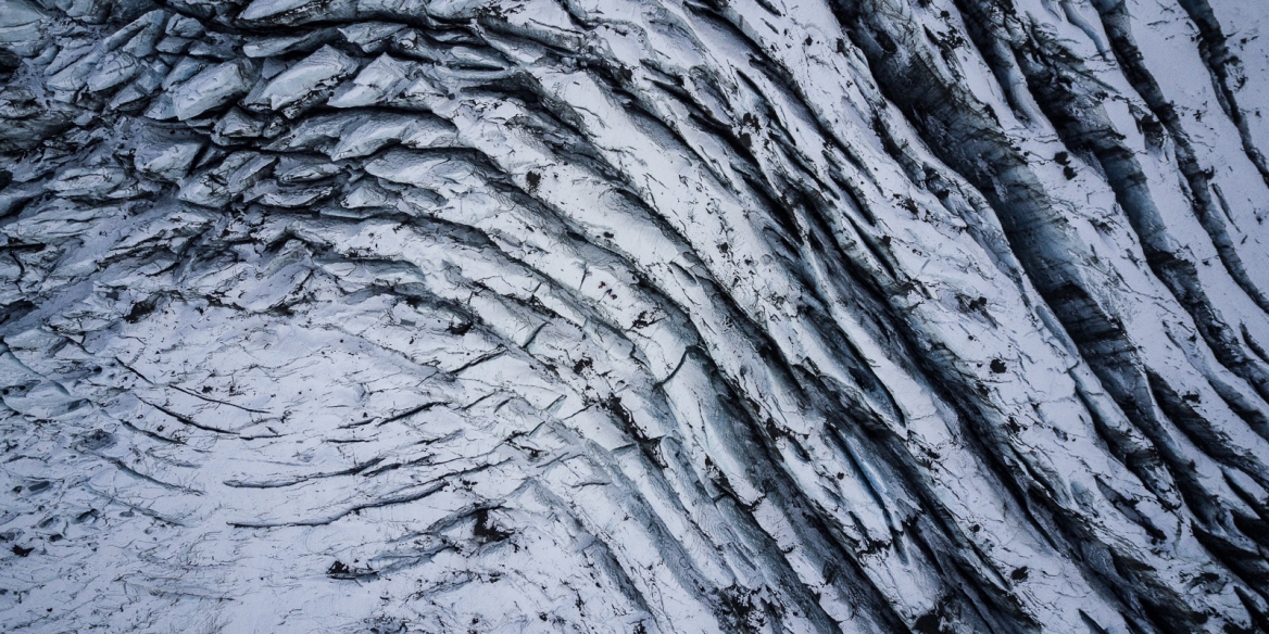 Þar komum við inn í talsvert sprungusvæði og þá kom það sér vel að vera með dróna meðferðis og setja hann í loftið til að sjá nærumhverfið og reynt að sjá leið út úr svæðinu. Það tókst, en þar sem það var farið að rökkva ákváðum við að ekki skildi haldið lengra að sinni, heldur var farið niður í bíl og verkefnið sett í salt.