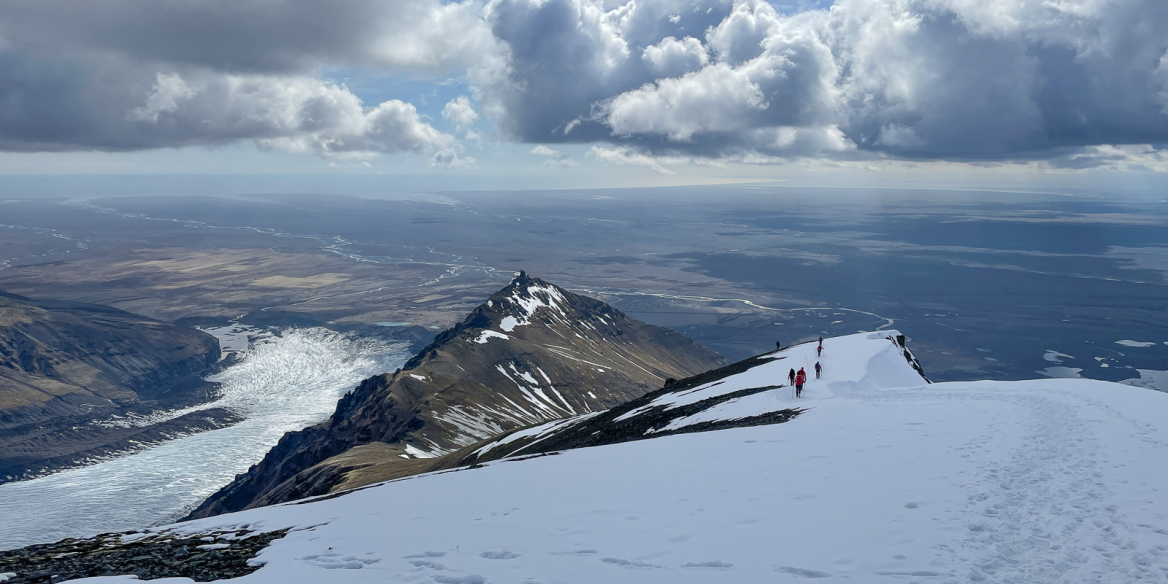 Það var aðeins napurt í næturfrostinu en útsýnið frá Sveltiskarði og víðar hélt fólki við efnið og hægt og rólega mjökuðumst við áfram inn í sólarupprásina meðfram Mosvallahryggnum og horfðum á Hvannadalshnúkinn og Hrútsfjallstindana baða sig í fyrstu sólargeislum dagsins. Það gladdi kalda kroppa að sjá sólina vinna sig hærra upp á sjóndeildarhringnum og ljóst að það stefndi í sólríkan dag.